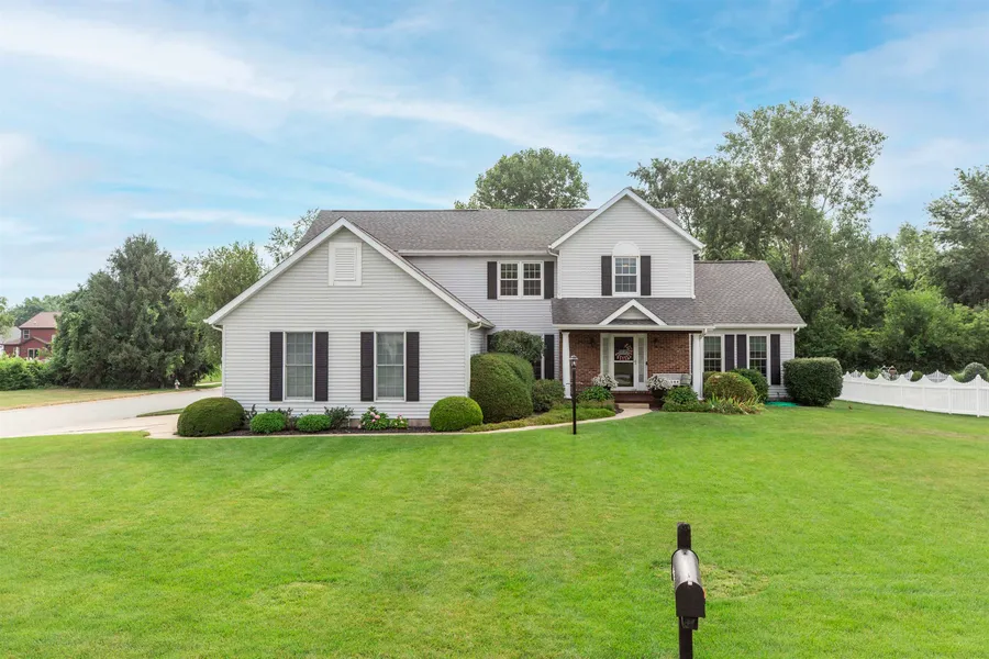 Welcome to this spacious 4-bedroom, 2-story home located in the desirable Stonehedge Estates neighborhood, situated within the award-winning Penn Harris Madison school district, large deck overlooking small pond for that peaceful spot to unwind. Featuring a main floor master suite that includes heated tile floors Main floor vaulted ceilings, Skylights and second story overlook, Open and airy, with three generously sized upstairs bedrooms and ample closet space, finished basement boast fifth bedroom (non-Egress) full bath with shower, wet bar or kitchenette and spacious living area, central vacuum for added everyday convenience and simplicity, this well-maintained home offers comfortable living for families of all sizes. Enjoy the versatility of a 3-car garage, perfect for extra storage or workshop. Minutes from restaurants, Shopping and entertainment, 15 minutes to new Amazon Data center and GM Samsung Battery plant, This home combines comfort, location, and top-tier educationall in a quiet, sought-after community.