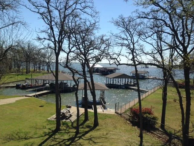 WATERFRONT LUXURY. Custom built waterfront home is the epitome of indoor-outdoor living with glass doors opening to a covered tiled terrace and huge cantilevered balcony, while floor-to-ceiling walls of glass erase the distinctions between inside and out. This beautiful home boasts a symphony of textures, hardwoods and distinctive architectural touches throughout including brick/stone exterior, granite countertops, built-in granite dining table, rich wood custom cabinets, covered tile patio/deck, and many more designer touches throughout. Downstairs master suite includes mammoth walk-in closet, his and her vanities, and separate shower and tub. Huge second living/gameroom is located upstairs with half-bath. A beautiful park-like setting among mature trees with deep water access to private boathouse. As an additional bonus a select furniture package will convey with the sale. A home for true connoisseurs of luxury lake living. Inquiry Code: 71613