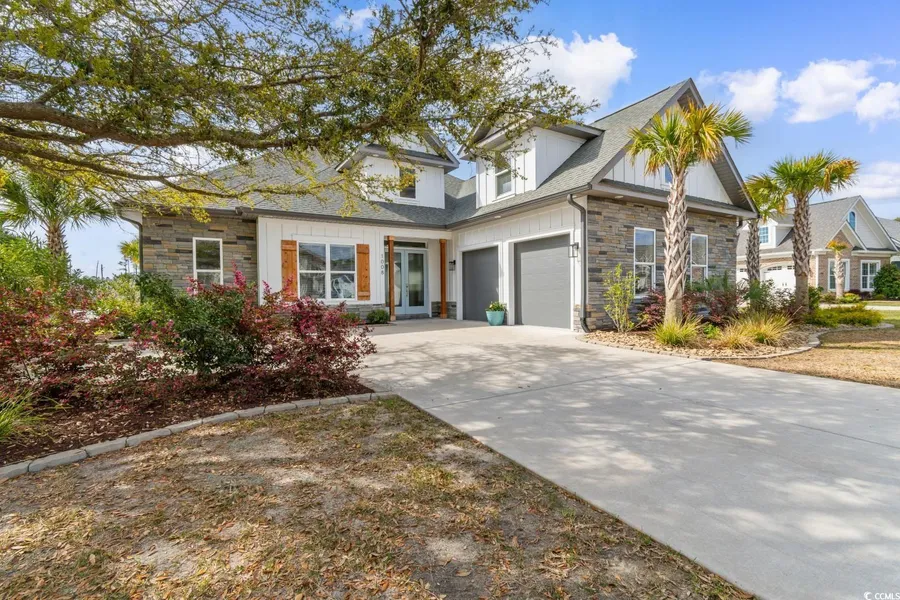 Experience luxury waterfront living in this stunning 4-bedroom, 3.5-bathroom home located in the desirable Wild Wing Plantation community. Nestled in a peaceful cul-de-sac, this home boasts breathtaking water views and an array of high-end upgrades. The interior showcases elegant craftsmanship with custom trim, molding, and ship-lap accent walls throughout. High ceilings enhance the spacious feel, featuring 10' standard ceilings with 12 tray ceilings in all bedrooms and 8' interior doors. The heart of the home is the gourmet kitchen, equipped with Samsung smart appliances, a natural gas stove, a smart French door bottom freezer refrigerator, and a Whirlpool smart washer and dryer. Step outside to your private backyard retreat, complete with a bulkhead, a fenced-in yard built to pool code, and an extended 10x20 patio with a cedar pergola. The outdoor kitchen is a chef's dream, featuring q...