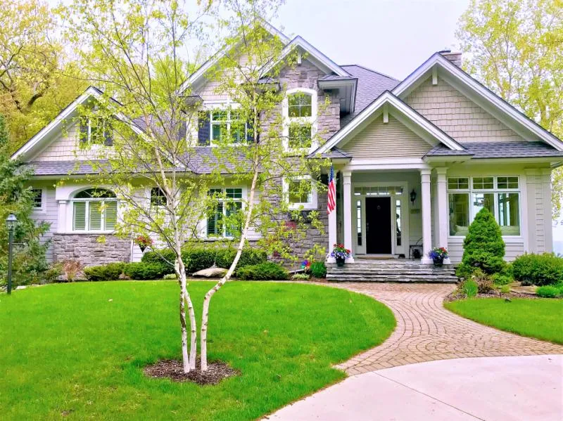 Within the prestigious Broken Rocks Association, a private association of homes extending one mile along the Lake Huron shoreline, you will find this fabulous 3 bedroom, 3.5 bath home. Upon entering you will feel as if you are on the ocean; the water views are that spectacular and available throughout the home. The great room which boasts a two-story ceiling detailed with exposed spider beams, a natural fireplace with gas logs, built-in cabinets all will impress you immediately. The lake views continue into the open gourmet kitchen with a center island, custom cabinets and high-end appliances. A spacious dining area is perfect for a family meal or entertaining guests. The master bedroom suite is on the main floor with a glass door opening to the lakefront deck and includes double closets, and a full bath with custom cabinetry, a soaking tub and shower. Also on the main floor, is a beauti...