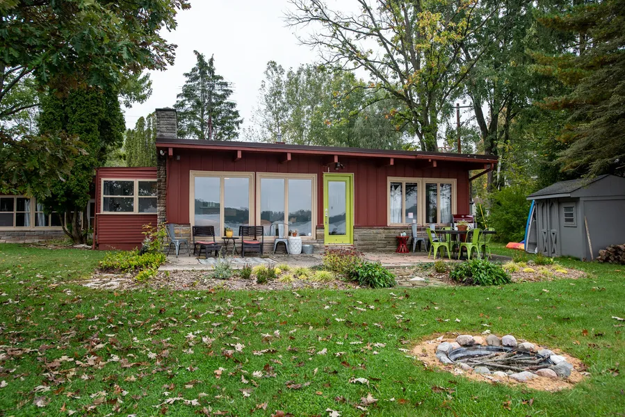 Live your best life all year round in this incredible one-of-a-kind Mid-Century Modern home with 116 feet of prime waterfront on Jordan Lake. This 3 bedroom home has been restored to its original glory and expanded to accommodate many guests comfortably. Recent updates to include new A/C, water heater, water softener, windows, doors, wet bar, cabinets, lighting, flooring, paint, fence, landscaping...and more! Nestled on a triple lot, this home is perfectly positioned to overlook the beautiful 430 acre all-sports lake. Spend your days swimming, boating, and fishing on the lake and then, unwind and relax on a kayak in the cove or, around the fire pit as the sun sets softly over the horizon. A short 40 minute drive from Grand Rapids and Lansing! Make this waterfront home your happy oasis!