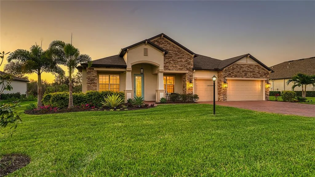 Set on a peaceful preserve with serene water views, this sprawling 5 bedroom plus den, 4 bathroom home boasts over 3,500 square feet in the highly sought-after neighborhood of Twin Rivers. Entering the impeccably maintained home you're greeted with an incredible open-concept living space adjacent to the gourmet kitchen with numerous upgrades and a massive island perfect for the at-home chef. Designed for easy entertaining, the home opens up to the expansive screened-in outdoor living space with a solar-heated pool, oversized sun shelf, ample deck space for entertaining or lounging in the sun and a fully equipped outdoor kitchen complete with new double gas burners, new outdoor refrigerator, grill and sink. The home impresses with its countless new updates totaling nearly $100,000 - ask the listing agent for a detailed list of upgrades! This is truly a home that epitomizes today's family and multigenerational lifestyle from its luxurious owner's suite featuring a spa-like bathroom and large walk-in closet, to its spacious guest bedrooms that all have walk-in closets and en-suite or adjacent bathrooms, to the large bonus room that can be used as the fifth bedroom, additional office space or a playroom/game room. Twin Rivers offers oversized lots and a wide range of amenities with low HOA fees and no CDD fees. Launch your boat at the private boat ramp on the Manatee River, or take your golf cart to the fishing dock, walking trails, three playgrounds, volleyball court, soccer field, and basketball court. This home is a must see for anyone seeking a luxurious, expansive and comfortable lifestyle coupled with a beautiful community that provides an abundance of opportunities for fun and great schools!