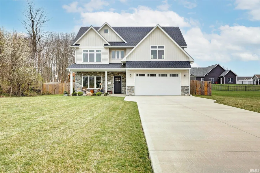 Better than new! This 2020 built, 4 bedroom/2.5 bath, two story home located in the Glen Meadow subdivision conveniently located between Bloomington and Ellettsville has seen numerous customizations and upgrades that the whole family will enjoy. The main level features a double height entryway, large formal dining room area that flows into the large eat in kitchen. The kitchen includes stainless steel appliances and features a new subway tile backsplash, new under cabinet lighting and a terrific walk in pantry. Directly off the kitchen is the large living area, complete with a built in entertainment center housing a custom fish tank and enclosed TV mount. The upper level houses the primary suite, including an en-suite bath and large walk in closet, 3 additional bedrooms, another full bath and laundry. The backyard has been completely customized with a children's play center, in ground trampoline and a new in 2023 above ground pool with a new deck surround for the pool. Other notable new features include high end cork flooring thought the home, new rear patio overhang, fresh paint on main level and built in storage in upper level bedroom/current playroom. This home has something for everyone and is move in ready without the hassles of constructing a new home.