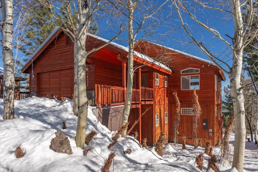 Experience the charm of mountain living at 14535 Wolfgang Road, where stunning views of the Carson Range meet cozy comfort, privacy, and unmatched convenience. Nestled in a serene setting on a .39 acre lot backing to open space, this home is the perfect winter escape for those seeking a warm and inviting retreat. Step into the expansive great room, a true centerpiece with vaulted ceilings, a granite hearth framing a gas fireplace, and walls of windows that bathe the space in natural light while showcasing the surrounding alpine beauty. The open layout flows effortlessly to the upper deck, ideal for winter mornings with a hot coffee or evenings under the stars. The lower level is a haven of relaxation, featuring a spacious primary suite with a walk-in closet, luxurious en-suite bath with a jetted tub and separate shower, and private access to the lower deck-a perfect spot to savor the crisp mountain air. This level also includes two additional bedrooms, a full bath, a convenient laundry room, and a family/rec room with views and deck access for added comfort and functionality. Practical and thoughtfully designed, the property offers a flat driveway for easy winter access, mature landscaping, ample storage, and even a dedicated dog run for your furry companions. With nearby trails, Alder Creek Adventure Center, and a setting backing to open space that feels worlds away from the hustle and bustle, this home is an ideal base for your mountain adventures. Offered mostly furnished, 14535 Wolfgang Road is ready to welcome you for the season and beyond.
