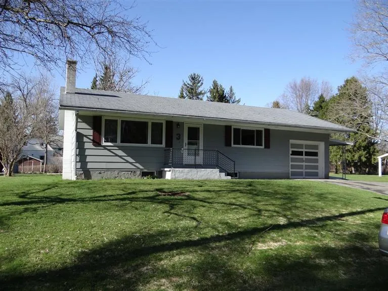 ONE FLOOR LIVING! Mint condition village home on a double lot. This 2 bedroom has been meticulously maintained and improved. The recent updates include the kitchen with CORIAN COUNTERS and CERAMIC TILE FLOOR, replacement windows, furnace and water heater. There is a den off the master bedroom that opens to the spacious patio, much of which is covered. The basement offers a heated 34x11 room for a family/play room. Outside there's a large level lot with pretty plantings. There is both an attached garage and a carport. Call today, make this house your home!