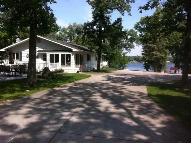 130' OF SANDY LAKE FRONT, 3 BEDROOM HOME, GAME ROOM WITH BUNK HOUSE, LARGE TWO CAR GARAGE WITH EXTRA STORAGE AND A LARGE SANDY BEACH ON THE SOUTH SIDE OF MAPLE LAKE IN MENTOR MN.