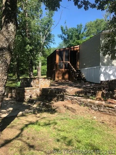Beautiful move-in ready home in Whitehorn Cove Area on Ft. Gibson Lake! Located just outside park and marina on partially wooded lot, extensive rock work on patio and fire pits. Screened front porch opens into great room. Kitchen has farm house sink and double pantrys. Double pane tilt-in windows w/2.5in blinds throughout. Split bedroom plan w/walk in closets in each room. Private Master bath has luxurious soaker tub to relax in plus shower and double sinks. New aerobic septic system less than 1 yr old.