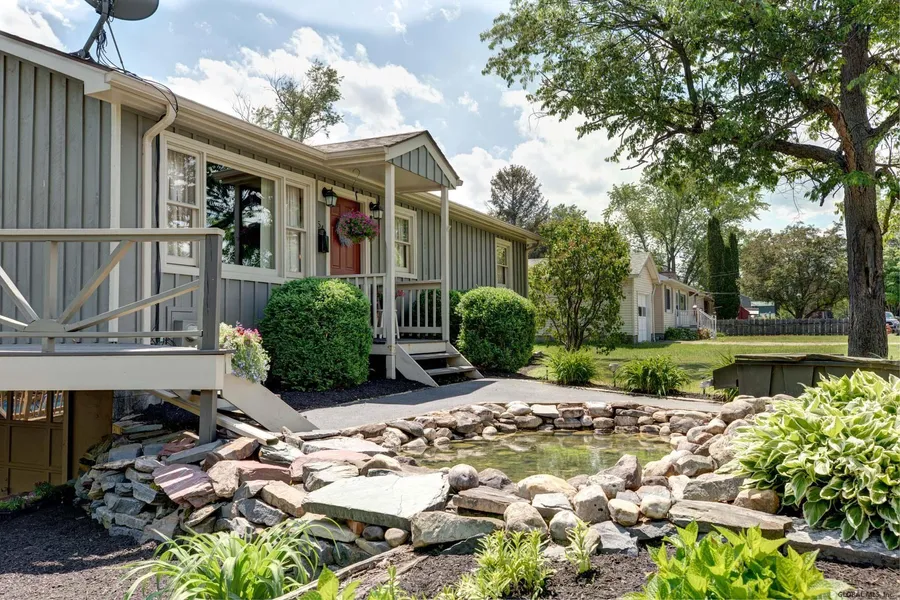 This hidden gem is tucked away at the end of a dead-end street! Charming 3 bedroom, 2 bath home with a spacious master suite and walk-in closet. You'll be wowed by the serene setting and quaint waterfall and pond as you enter the home. The lower level features a full walk-out basement with finished family room and woodstove. There is a bonus room which is great for extra storage or workbench. The gorgeous property borders the NYS Canal for even more privacy, hard to believe you are conveniently located within the village. Relax on the wrap-around deck overlooking the new pool! Appliances new in 2020.