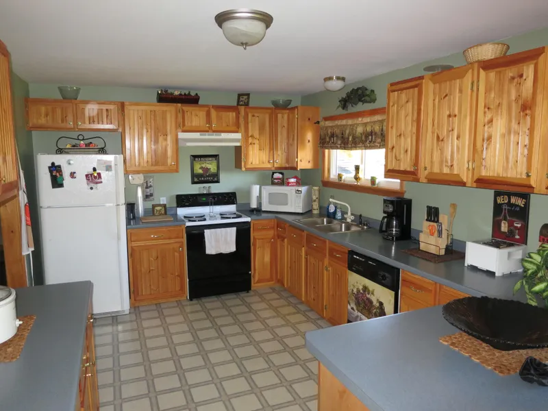 #2229) 25 Franklin Street, Calais: Completely updated 3 bedroom, 1 bath ranch on a quiet in town side street with large deck & porch, pool, 2 car garage and paved driveway all on a well landscaped 0.39 acre. New windows, siding, roof, doors and gas fireplace. Perfect home for single floor living!