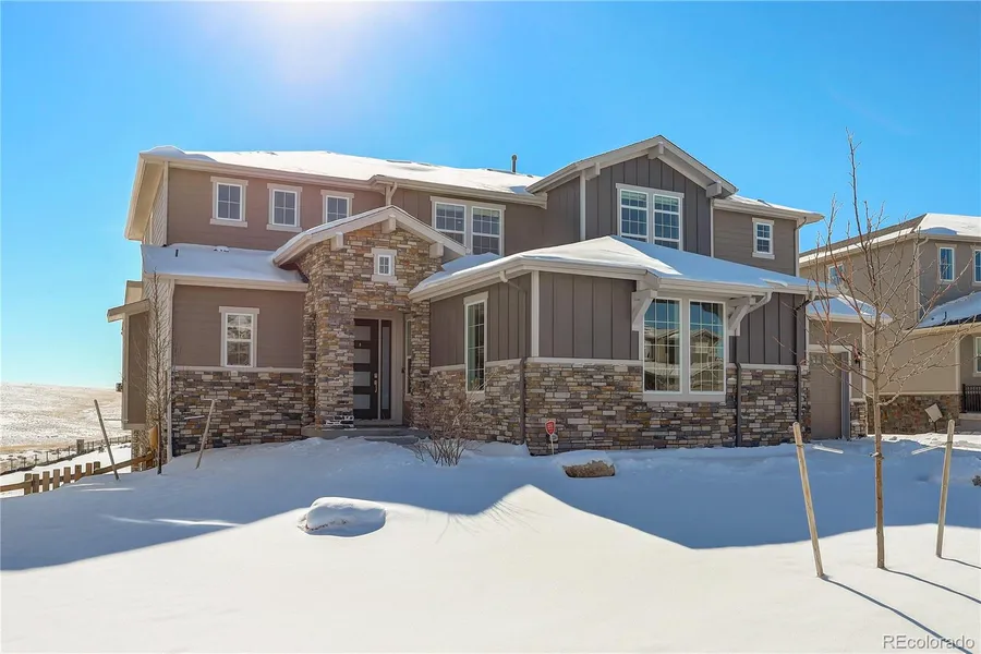 Stunning 2 Story Home with views of the Aurora Reservoir located in Southshore! Nothing compares to this amazing property with upgrades galore & custom finishes. Upon your arrival you are greeted by a sun drenched, open floor plan. 2 story Great Room sets the stage with Four-panel stackable patio doors that allows you to enjoy the beautiful Colorado weather while sitting inside or outside. Main floor offers a grand, gourmet kitchen, massive island, upgraded KitchenAid Appliances, rich toned, sleek cabinetry, beautiful counters, tiled backsplash, walk-in pantry & breakfast nook. Formal dining room is adjacent to the kitchen & access to the butler's pantry with beverage refrigerator & cabinets to store all of your barware. Guests will stay for days in the guest suite with private 3/4 bath & walk-in closet. The office is the perfect place to conduct business. Mud room has custom built-in bench & coat closet. Upper level hosts an impressive Primary Suite, luxurious, spa-designed bath with 2 sided entry shower, soaking tub, dual vanities & 2 custom, walk-in closets. Two generous sized secondary bedrooms are adjoined by the Jack & Jill Bath, double vanities & walk-in closets. The loft, create the space & the laundry room is equipped with utility sink & cabinets. Thoughtfully finished walkout basement includes a media room, pool table area, expansive 5th non-conforming bedroom, currently used as the fitness room can easily be converted to a 5th bedroom, Bar, art gallery area & numerous closets for storage. 3 outdoor spaces are truly an extension of this fabulous home as you can relax on the upper deck, soak up the sun on the patio or dine on the covered patio below. Professionally landscaped, fenced backyard has garden beds & plenty of room for fun! Other amenities you will appreciate are the cable handrails, central vacuum, surround sound ready, 3 car oversized garage with utility sink & suspension shelving, custom lighting & mirrors & so much more.
