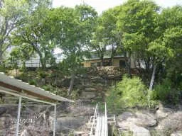 Three-level lake house with pool!! It has a great raquetball court and game room! Nice Dock. Good water. Great View! Wood-burning stove. New pump. Lake water with osmosis system. Central heat and air. Never flooded. Leased property. Septic system. Great Place to live!