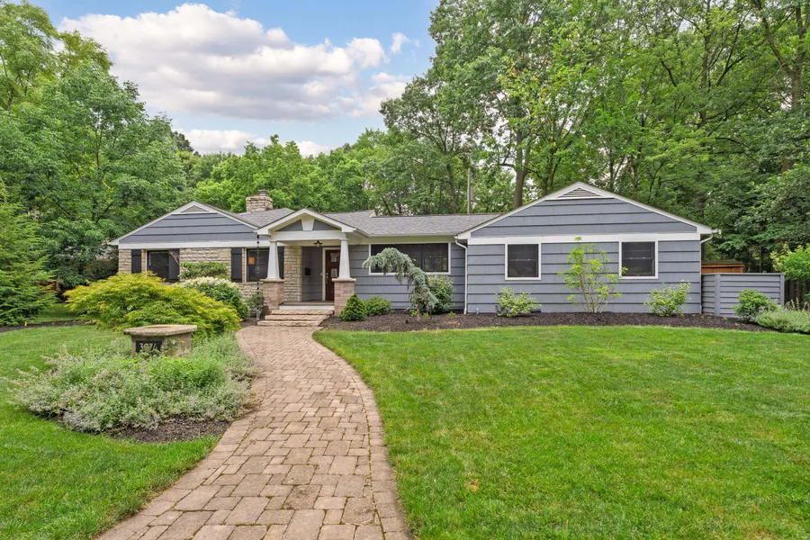 Tucked away just south of Overbrook Ravine, this beautifully recently renovated and expanded 1950s ranch offers over 2,400 square feet of thoughtfully designed living space in a serene, park-like setting. Every inch of the home has been meticulously restored or updated with custom, high-end finishes to create a truly one-of-a-kind residence. The spacious living room features a gas fireplace and custom-built entertainment center, flowing into an open dining area and chef's kitchen-complete with a built-in bar, large island, custom cabinetry, Jenn-Air appliances, walk-in pantry, and a layout perfect for both cooking and entertaining. The owner's retreat includes a generous bedroom, luxurious en-suite bath with heated floors, large walk-in shower, double vanity with custom cabinetry, a walk-in closet with Elfa system, and a laundry room. Just off the suite is a peaceful sitting room with large windows overlooking the professionally landscaped yard, along with a private den. Two additional guest bedrooms-each with Elfa closet systems-share a charming full bath. A bright sunroom with sliding glass doors opens to a patio and the lush backyard, with convenient access to the attached 2-car garage. The lower level provides ample storage and houses the home's mechanical systems. Situated on a private 0.4-acre lot in one of Clintonville's most desirable areas, this is not only a dream home... this is a dream location, a quiet setting and unbeatable access to all that the Clintonville area has to offer.