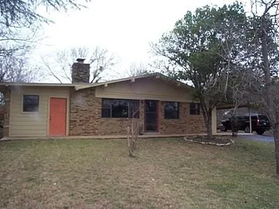 Stone and wood home on two wooded lots in Sunrise Beach across the street from Lake LBJ.