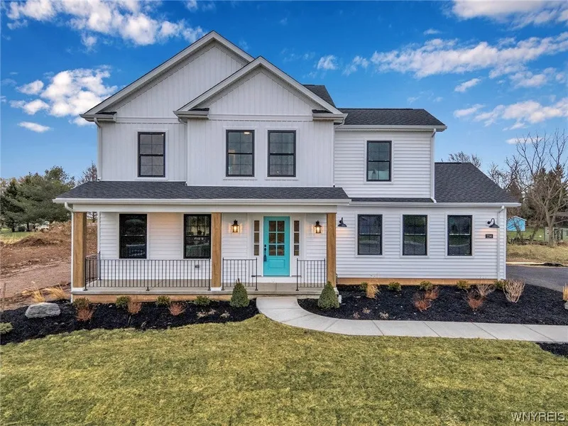 Welcome to 7286 Woodhaven Drive in the lovely Lincoln Woods neighborhood in the Town of Lockport. Enter from the quaint front porch and you’ll see a customized Jefferson model with the 4 bedroom option. The foyer has a coat & seating space, half-bath. The bright living room features a gas fireplace with brick hearth. Lovely eat-in kitchen has a large center island with striking quartz countertop & breakfast bar, attractive wood cabinets with soft-close drawers, stainless steel appliances, step-in pantry, and adjacent dining area with sliding glass door to rear yard. Luxury vinyl flooring also compliments the first floor. Primary bedroom on second floor has plush carpet, full bath with walk-in shower, double-sink floating vanity, and walk-in closet with custom barn door entry. Three additional bedrooms with plush carpet, large closets, full bath, and second-floor laundry area. This Energy...