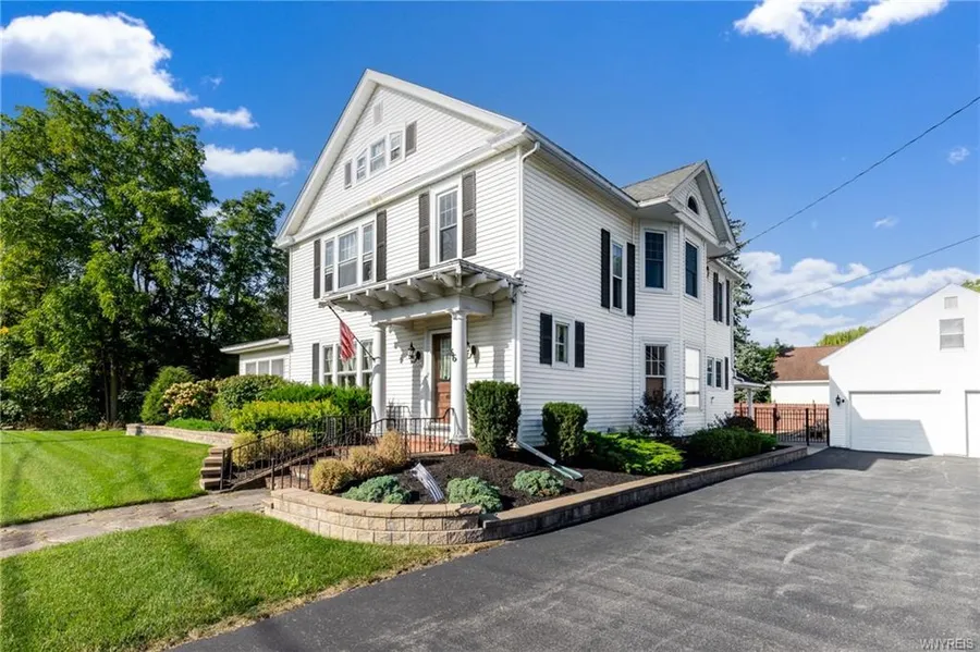 Must see this beautiful property in the village of Middleport. This 4 bedroom, 2.5 bath home is located on a peaceful street. It has a full basement and walk up attic. The extra large driveway, 2 car garage with attic space, newer large storage shed, inground pool and professionally landscaped yard with irrigation system complete the outside. The large recently remodeled eat-in kitchen boasts a Wolf gas range/oven, a built-in microwave drawer and ceramic floor. A fireplace anchors the large living room with an attached sunroom with sliding doors to the beautiful yard. Lovely hardwood floors throughout the first floor and bedrooms. The roof is approximately 10 years old and the gutters have leaf filter protection. Make your appointment today, offers if any due September 10th by 5:00PM.