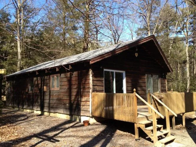 Classic chalet near Lake Wallenpaupack, schools and the townof Hawley. 2 bedrooms plus large sleeping loft with wood stove, 1 car garage, shed and deck. Situated on a level lot, with no community rules or fees! Priced to sell!!