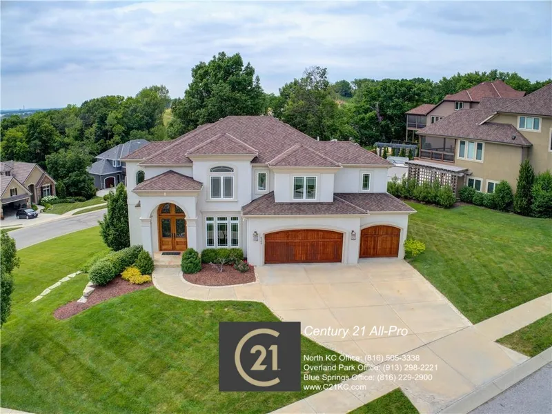 ABSOLUTE STUNNER in BRIARCLIFF HILLS! Fantastic location close to KC and KS. Watch sporting events and party in your finished, walkout basement with surround sound and bar. Cook a feast on your Wolf cooktop/oven and enjoy the spacious eat-in kitchen w/large island to gather for conversation. Beautiful sunsets on your screened-in, covered deck w/views of downtown KC and MO river. Other features include: California Closet, Stone Shower, Cast-iron tub in MSTR; Excavated garage; Central Vac; Whole House Audio and more!