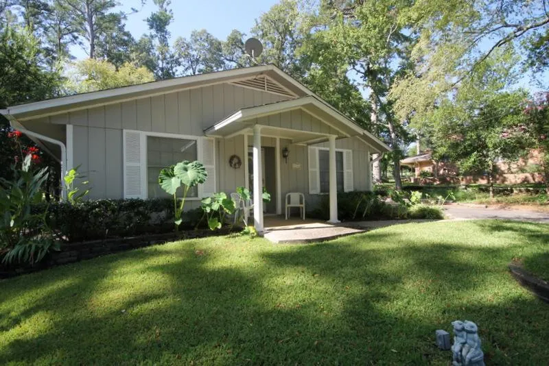 Floor to ceiling glass in the living area located on the #6 fairway of the west course. Vaulted ceiling and fireplace. Two large bedrooms, one with a private bath and one bath in the hall. Huge utility room with second pantry area and lots of storage. Attached by the roof is a separate building with two separate rooms in it. One has a window air cond. The other is a large storage area. There are also two cedar closets perfect for storing out of season things. Great landscaping and unusual backyard & patio to enjoy the great views!