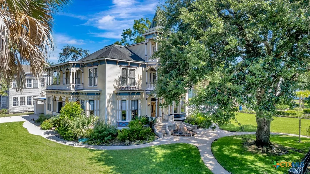 Nestled on a spacious corner lot in the heart of Old Victoria, this magnificent Italianate Victorian home, designed by renowned architect Jules Leffland, is a true testament to timeless elegance and historical significance. Originally situated in Indianola and now proudly standing as a landmark on the National Register of Historic Places, this residence seamlessly blends rich heritage with modern comforts. As you step inside, you'll be captivated by the impeccable detailed woodwork that graces the interiors, reflecting masterful craftsmanship. The original long leaf pine flooring, meticulously preserved, adds a warm and inviting touch to the grand living spaces. Each room tells a story, with intricate wood detailing that echoes the home's storied past. The modern updates are thoughtfully integrated to enhance the home's functionality without compromising its historic charm. The gourmet kitchen is a chef's dream, featuring state-of-the-art appliances, custom cabinetry, and elegant countertops. Whether you're preparing a casual meal or hosting a grand soire, this kitchen is equipped to handle it all with style and efficiency. The expansive corner lot provides ample outdoor space, perfect for both relaxation and entertainment. The lush gardens and mature trees create a serene backdrop for the stunning pool and spa area, offering a private oasis for unwinding or entertaining guests. This residence not only offers a piece of history but also a comfortable and luxurious lifestyle. Its prime location in Old Victoria ensures that you are close to the vibrant community, with its charming shops, fine dining, and cultural landmarks. Discover the perfect blend of historical significance and modern luxury in this exceptional Italianate Victorian home. A rare opportunity to own a piece of history, meticulously maintained and thoughtfully updated for today's discerning homeowner.