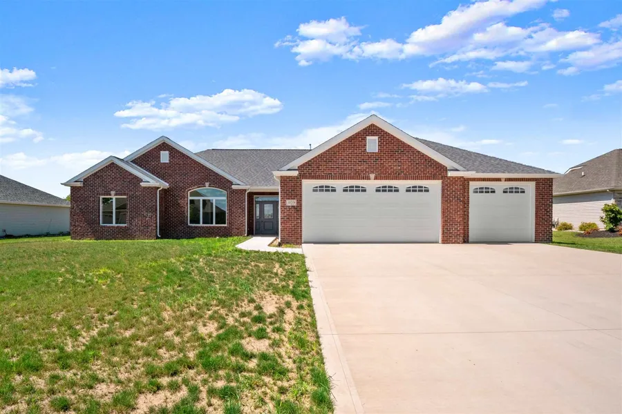 A Dream Come True in Hunters Glen. Sprawling, Modern, Custom-Built Ranch on a .4 acre Lot! Everythings been Considered with Entertaining, Elegance, Convenience and Storage in Mind! Lets start with a Grand Foyer Entrance beaming with sunlight through the leaded glass door, transom window & sidelights, Beautiful Wainscoting, Woodwork & Fluted Trim, Luxury Vinyl Plank Flooring, Coffered Ceiling in Great Room with Accent Lighting, 10x20 Sunroom, Chefs Kitchen opens to the Massive Dining/Entertaining Area with Pond Views, Custom, Soft-Close Cabinets, pull-out shelves, Granite Countertops & Island, Canned Lighting, Wall of Windows, 8 Ft. Wide Pantry w/ Double Doors, Huge 1st Bedroom Suite with Double Tray Ceiling with Accent Lighting, Luxurious Walk-In Tile shower with Bench Seating, Double Vanity, Pocket Doors and Exhaust Fan with Heater, Easy Access to the 2 Story Dream Closet with Custom Adjustable Shelving, Private 2nd BR could easily serve as a guest or mother in-law suite with private Bath, 3rd Bedroom with Cathedral Ceiling could double as a Den or Office. Over-Sized Laundry Room with Loads of Storage and Folding Area, set up for an Addl Refrigerator or Freezer and plumbed for a Sink. Locker System and Bench off the Finished Garage, designed to store all the Toys with a spacious 2 Car Area and TANDEM 36 Ft. Long 3rd Bay with Stairs Leading to the Walk Up Attic. Check out the wash basin and plumbing for a utility sink! The Exterior of the Garage is Wired for a Generator! Anderson Windows throughout. Brand New HVAC system plus Water Heater with re-circulating hot water line! Covered Porch & Patio! Plumbed for Irrigation. This Home Checks All the Boxes! Enjoy the Peaceful Lot in this Sought-After Neighborhood.