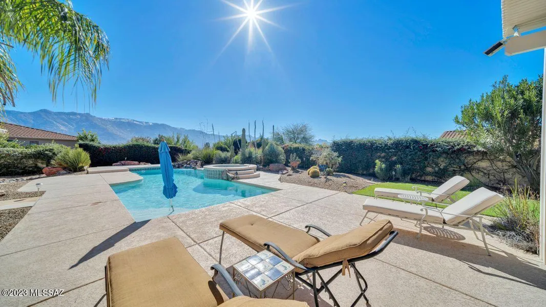 An absolutely dazzling home inside and outside! Enjoy a luxurious resort-like setting back yard to include an oversized lap pool, 2 ramadas, full BBQ with fridge, counter seating, outdoor speakers, rosebush garden, citrus trees, and extensive mountain views. Inside is a gourmet kitchen and a large island with bar seating. Beautiful 42'' cabinets, full backsplash, SS appliances, and gas cooking. You will love the open great room leading to the spacious covered patio. The grand entry leads to the living room with a cozy fireplace, charming dining room, soaring ceilings, and an exquisite staircase leading to guest bedrooms and bath. The master suite has a seating area, slider to the patio, and luxury bath. The 3 car garage has built in storage, a workbench, and pulldown attic stairs.