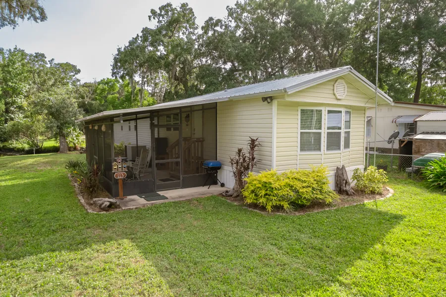 This waterfront home, located on a canal, is just a stone's throw away from the St. Johns River. With over 180' of canal front you can fish from the bank and enjoy the water views. Inside you will find a spacious open floor plan with cedar trim beams, a gas fireplace, and an interior laundry room. Modern amenities include double-pane windows, a tankless water heater, and a metal roof. Bathrooms have updated vanities and tile floors. Cedar trim on doors, baseboards, and beams throughout the home. A screened front porch provides year-round enjoyment. Nearby is a public boat ramp, and the home has a large rear deck overlooking the canal. Additional features include a storage/workshop building with electric, partially fenced property, a covered boat lift, bulkhead, a cement slab for parking, and a camper RV hookup. Home is being sold ''As Is''.