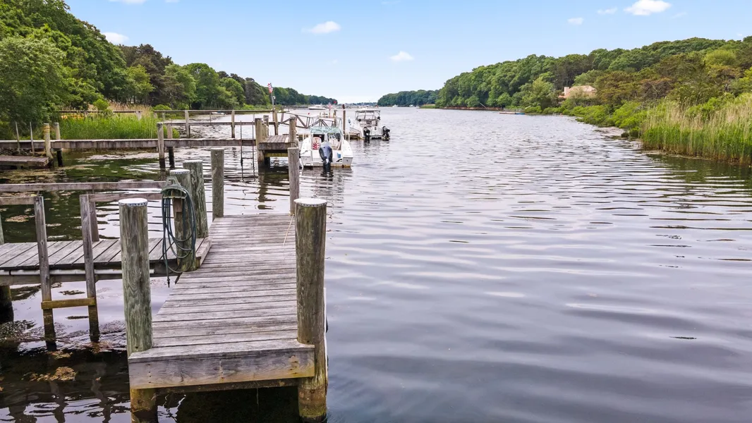 This exquisite waterfront property offers a sprawling backyard that leads directly to a private dock with ocean access. Boat directly into the Vineyard Sound from Great Pond for salty days on the Cape. An oversized deck was designed with summertime entertainment in mind when you're not on the water. Wash off in the outdoor shower before entering the family room with an expansive, curved ceiling. Three ample-sized bedrooms provide plenty of space for your family and friends. Beach towels can go straight into laundry on the main floor. Plenty of space in the basement to store your kayaks, paddle boards, and beach gear! Come experience the ocean in Falmouth, this is a must see!