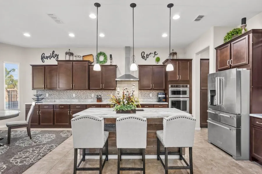 Surround Sound, Ceiling Fans, 20" Tile & Upgraded Carpet thru-out, Rain Gutters, Tankless Gas Water Heater, Water Softener, RO System, Keyless Garage Entry, RV Gates. 4.5 Car Garages, 3 Car Tandem is Insulated, has Utility Door, Built-in Cabinets, Workbench, Ceiling Storage, & Commercial Sink. Single Garage is oversized/extended. All of this and NO CFD! Easy access to Dining, Shopping, Entertainment, Freeways & the new Legacy - Bell Bank Park! A Must See to be able to take in all this home has to offer!