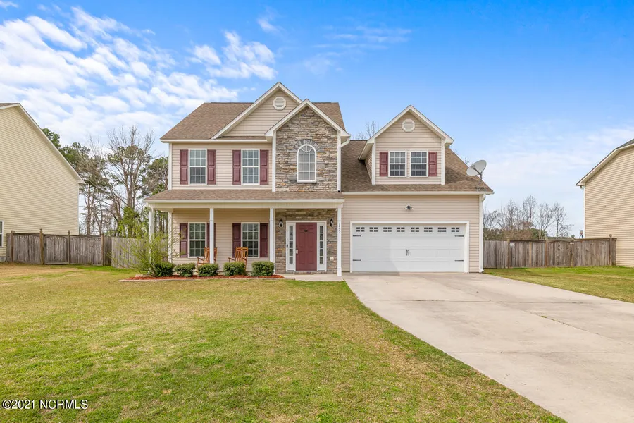 Large 5 bedroom 3 1/2 bath home in Richlands. You will love the curb appeal with the covered porch and stone accents. There is a space for everyone. Family room, formal dining room, and eat in kitchen. The 1st floor has new low maintenance LVP. Plenty of cabinet/counter space in the kitchen with quarts countertops. Newer appliances and a large pantry. Rounding out the first floor is the owners suite with a walk-in closet, an attached restroom with both a soaking tub and separate walk-in shower. Upstairs you a second Owners Suite complete with an attached bathroom with both a soaking tub and walk-in shower, Rounding out the upstairs is 3 additional bedrooms and a full bath. . Out back is a covered back patio and large fenced in back yard-On the back fence is green open space so no noisy neighbors. LONG driveway to be able to park multiple vehicles. If you looking for a subdivision with NO HOA this is it. Priced to sell. Schedule your appointment today as this one will not last long.