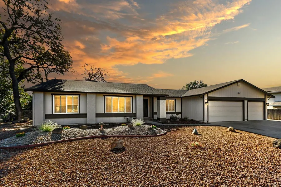 Discover the perfect combination of timeless design & modern sustainability nestled in the highly sought-after American River Estates, offering a harmonious blend of modern updates. This 4-bedroom, 2.5-bathroom home sits on a spacious 0.42 acre lot, providing ample room for relaxation & entertaining. High-efficiency features include an owned 25-panel, 8.0 kW solar system, complemented by a new roof installed in 2020 featuring GAF Deck Armour Underlayment & Timberline CA Cool Shingles. Whole house fan, Reflective attic insulation & solar attic fan ensure year-round temperature regulation & energy savings. Inside, fresh updates include interior paint & carpet, creating a bright and inviting atmosphere that perfectly complements the home's timeless aesthetic. The backyard is an entertainer's dream, complete with a sparkling pool with new liner, a soothing fountain & firepit. Enoy the enormous covered-patio, built-in BBQ & horseshoe pit. 2 sheds provide additional storage. A fenced garden area allows for planting, while the low-maintenance front yard ensures effortless upkeep. Majestic oaks frame the property, offering scenic views and tranquil privacy.