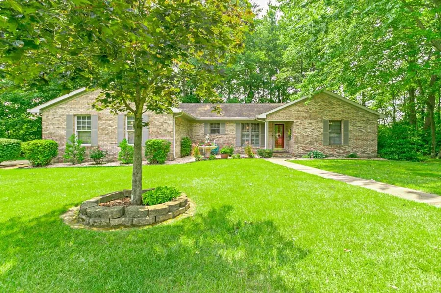 Situated on a large private lot this one owner full brick ranch was custom built and features quality amenities throughout the home and gorgeous woodwork including hardwood flooring and solid wood doors. This immaculate 3 bedroom, 2 bath home with 2.5 car side load garage offers great curb appeal with gorgeous landscaping. This open floor plan features a foyer that opens to the spacious great room offering a soaring ceiling and French doors leading to the large sunroom overlooking the wooded backdrop. The kitchen is light and airy and offers an abundance of custom cabinetry including pantry cabinet, tiled backsplash, breakfast bar, newer appliances, planning desk, and a large dining area with double window. This split bedroom design offers a large master bedroom with hardwood flooring and a master bath with double sink vanity, walk-in shower, and spacious walk-in closet. There are two ad...