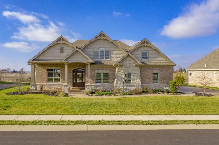 Unbelievable value in this luxury two story home in Bellevue Estates. This one owner gem has all the bells and whistles that you expect in a Denton Home. Custom trim, arched doorways, top of the line hardware, plantation shutters, double crown molding, hardwood flooring, and wainscoting are just some of the features as you walk thru the front door. The sprawling kitchen hosts an abundance of glazed cabinetry with glass door detail, granite counter tops, stone tiled backsplash, stainless appliances, gas cooktop, pantry and large center island. A formal dining room is open to the great room and kitchen. The great room overlooks the fenced in back yard and covered patio with retractable awning. A stunning corner gas fireplace with custom mantel completes the great room. The main floor owners suite has trey ceilings with stacked crown molding, plantation shutters and a spacious attached bath...