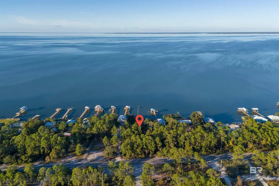BAY FRONT! 78.5' X 235' READY TO BUILD!! Perfect place to enjoy beautiful sunsets across the Bay. NO ITP required. Conveniently located across from Quick Stop & Sassy's - the old Pines Grocery & Restaurant. Easy access to both Bay and Gulf Fishing & Recreation. Enjoy world Class Golf, Marina, Charter Fishing, Restaurants, Ferry and Historic Fort Morgan. Buyer to verify all information during due diligence. Need to see this.