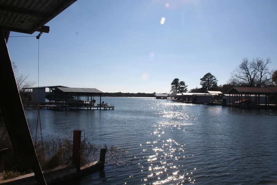 Views to the open waters of Lake LBJ from this property that features old oak trees, a boat dock, boat lift and a cozy cabin. Use the cabin on weekends while you plan your dream lake home. Two lots with 140 feet of water frontage and pump for irrigating property. Cabin is one bedroom, one bath, includes a wood-burning stove and has original wood floors and vaulted wood-plank ceilings.