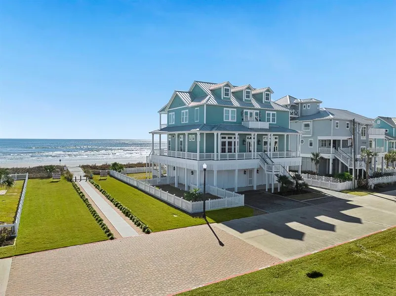 LUXURY BEACHFRONT LIVING! One of Galveston\'s most fabulous homes in much sought after Beachside Village, Exquisitly Elegant, yet Invitingly Comfortable for a Beachfront getaway to accommodate a large group of friends or family. Home offers 2 living areas, as well as 2 laundry/utility rooms, and 2 Wetbars one on each floor. The large open spaces of the main floor living/dining/kitchen area Great room are simply breathtaking, from the 12-ft ceilings, beautiful quartz kitchen countertops and high end appliances, to the built-in bar area, the Gas Log Fireplace, and of course, the expansive Beachfront Views. Large Decks on both floors allow you to take in the fresh Ocean Breeze, hear the sea birds, and listen to the waves crash! An Elevator will take you from the ground floor up to each floor. This magnificent home is being offered furnished with only a few exclusions. Vacation Rentals are welcome in Beachside Village, and this would certainly be an income-producing home if desired.