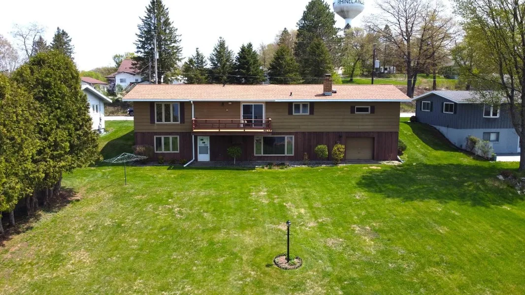 Boom Lake Home. 4 BR 2 BA Ranch style home with a large level yard & 99ft of frontage on the Rhinelander Chain of Lakes. This spacious city home offers a large main level living room, dining room & kitchen as well as 2 Bedrooms & a full bath on all on the main level. The walk-out lower level offers another 2 bedrooms, full bathroom & large family room with wet bar; as well as a laundry/utility room, root cellar & access to a 1 plus car garage that open up to your lakeside yard. The lower level garage is perfect for yard equipment, snowmobile, atv/utv, wood storage or anything else you want to keep out of the elements. 2 car attached garage off the main level, & the entire yard has an in-ground sprinkler system. Yard shed & large concrete slab lakeside for entertaining or more storage. The home is vintage, but in excellent shape. City utilities, a new roof (2018) & all electric inside uti...