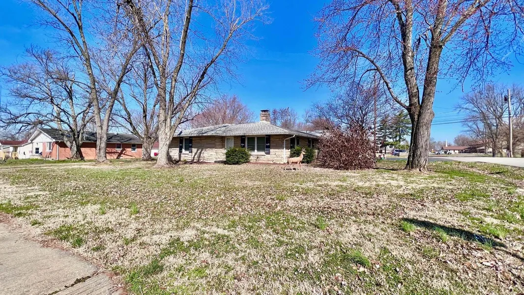 Large 3-bedroom stone ranch with over 2,000 sq ft on the main level and a partial, finished basement. There is an in-ground swimming pool enclosed by a chain link fence and still plenty of green space for your fur babies on this large lot totaling .43 of an acre. Home has 1 full hall bath and the master bedroom has a private half bath with potential to renovate and easily expand to a full bath. The spacious eat-in kitchen has tile flooring, a breakfast bar and includes all appliances. The side entrance opens to a tiled breezeway style room with an oversized family room on one side and the kitchen on the other. The basement consists of a large rec room and separate utility room with a kitchenette, laundry facility and block shower unit. This Bedford stone ranch sits on a large corner lot and has ample parking under the 3 car carport and additional parking on the asphalt driveway. (The 3rd bedroom is the main level front living.) Property is being sold As-Is?. 3 parcels totaling .43 of an acre. Seller is providing a $535.00 AHS Home Warranty that covers the purchaser for one year from closing.