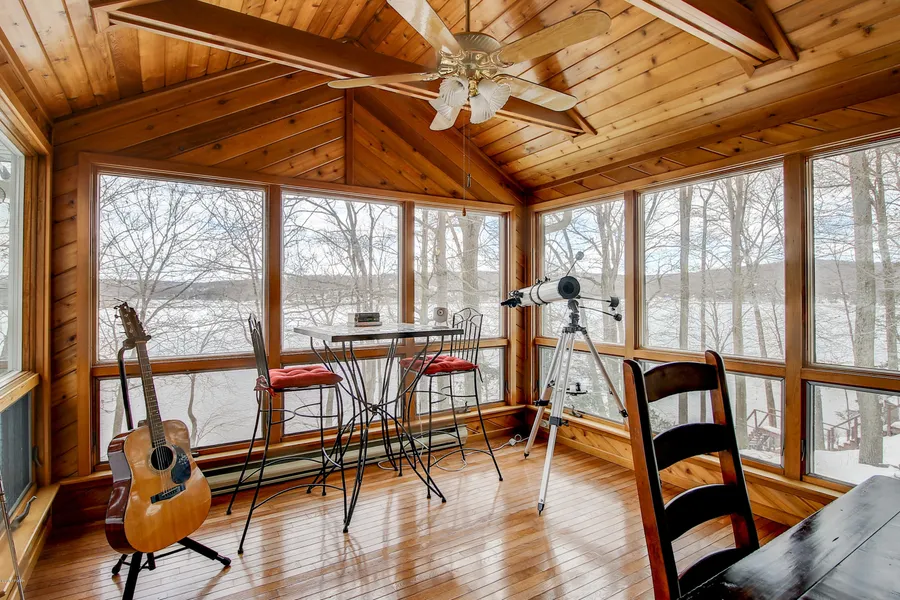Check Out This Move in water front home on Lake Wallenpaupack, and feel the Hot summer days on the lake, the Fall foliage viewing from the boat, and ski days at local mountains followed by peaceful winter nights. Quiet solitude and family chaos. You can do it all at this lakefront retreat in prestigious Lakeland Colony. Two family rooms, each with a wood stove. Wall of windows and sunroom for excellent lake views. Large deck and stone patio. Parking for ten cars or for a family corn hole tournament. Two car attached garage (a rarity at the lake). Large kitchen with ample counter space for serving crowds. Large shed for floats, life jackets, and other lake toys. EZ dock included. Central AC, 3 bedrooms, 2.5 baths.