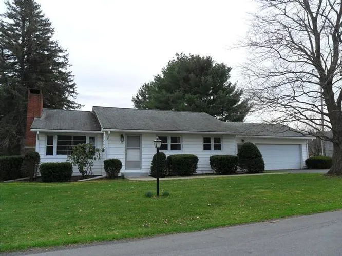 Great Single floor living in this bright move-in condition ranch, on quiet residential street, walk to school, pool, ball fields & tennis courts. Modern kitchen with Corian counter tops & ceramic tile floor, nice LR with gas insert in FP, 3 nice sized bedrooms and dining room complete the first floor. Large finished family room with built in bar, plenty of storage closets, with bilco door to outside. Laundry and shop area . Bonus room with huge Sunroom connecting house to two car garage, has solid redwood paneling with full windows across the back looking into the huge back yard.