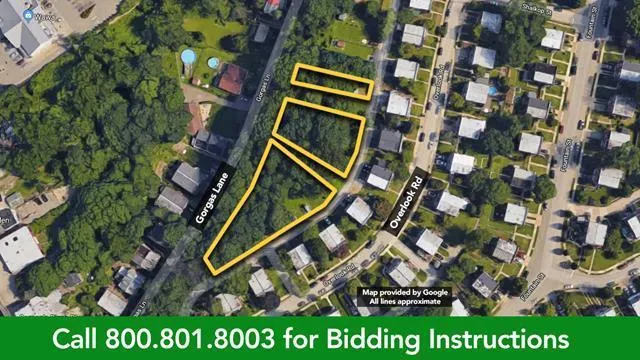 Auction Starts: 9:00 AM 4/22/2018 Auction Ends: 11:00 AM 4/25/2018 Nominal Opening Bid: $75,000. CALL 800.801.8003 FOR BIDDING INSTRUCTIONS Great investment opportunity. 3 Residential lots in Philadelphia, PA. Roxborough Neighborhood. 570 Gorgas Lane is 13,504+/- sf. 582 Gorgas Lane is 4,519+/- sf. 540 Gorgas Lane is 19,350+/- sf. Total for all three is approx 0.44ac. 2018 taxes approx. $2,719.81. Note: A Buyer's Premium (Buyer's Fee in WI) will apply for this property. Please see Terms of Sale for details. Broker Licenses: PA Daniel Nelson RE LIC RM42770; Williams & Williams RE LIC RB067514; Peter Costanzo AUC LIC AU003142R; Williams & Williams AUC LIC AY001966 Peter Costanzo AU3142R