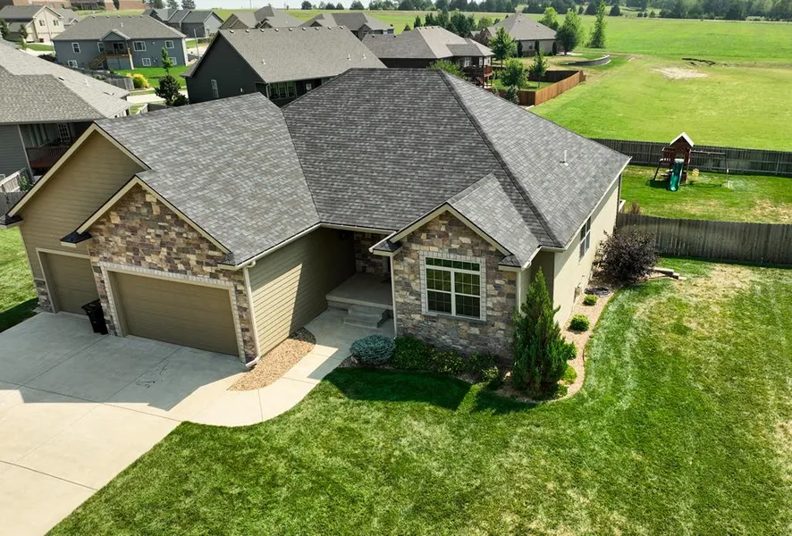 This home is in immaculate condition! Better than new, featuring 5 bedrooms, 3 bathrooms, w/ a large 3 car garage sitting on a 0.44 acre lot. All the space you are looking for w/ nearly 4,000 sq. ft. of total living space. Large open concept living displays natural light throughout main floor w/ beautiful backyard views. Attractive kitchen w/ granite countertops, subway tile backsplash, custom cabinetry, walk-in pantry, gas oven/range, and a custom chimney wall mount hood vent. Primary suite features tile walk-in shower, large walk-in closet, dual vanity sinks w/ tile flooring & connects to a large main floor laundry. Full finished basement is complete w/ a wet bar, family room, 2 large bedrooms & bathroom connected to wi-fi music. So much storage! Backyard is a dream w/ a privacy fence, sprinklers, large stamped concrete patio, tastefully landscaped fire-pit, & built in kitchen area-great for entertaining.! Pool lovers, this backyard is the perfect size! Washer & dryer to remain.