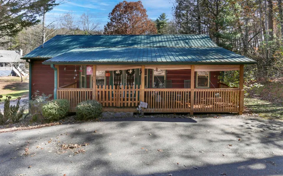 What a delightful cabin in the North Georgia Mountains! Situated on a gentle .44-acre lot surrounded by beautiful trees, this cabin offers a cozy retreat. Most furnishings are included, making it move-in ready. The main floor features a master bedroom, an open great room with a stacked stone gas log fireplace, and a T&G wood vaulted ceiling. The kitchen boasts stainless appliances, and the interior showcases a lovely blend of drywall and wood, with wood floors adding to the rustic charm. The cabin also includes a workshop area, ample storage, a wood-burning stove, a living room, and a metal roof for durability. The screened porch, covered porch, and concrete patio with a fire pit area and grill provide plenty of space to relax and enjoy the outdoors. With two driveways (lower and upper level), public water, and a county-maintained road, convenience is at your doorstep. Plus, it's less than 10 miles to town. This cabin is the perfect mountain getaway!
