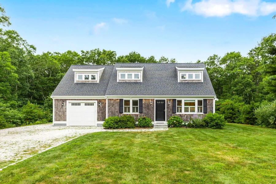 Cape style home built in 2017 is 'Just Right'. Located in desirable North Falmouth on Cape Cod, this 3 bedroom 3 bath home is close to the village conveniences, beaches and Shining Sea Bike Path Northern Trailhead (4 min on bike). The first floor has an open floor plan, lovely granite and stainless appliances in the kitchen, gas fireplace in the living room, first floor bedroom suite has a full bath with shower and a walk in closet. Also on the first floor is a laundry room and guest half bath. Garage has interior access, door opener and a door to the back yard. Upstairs you will find a spacious den, full bath with shower/tub and two large bedrooms. The house has hardwood floors throughout, central air, gas furnace, sweet yard accessed by the slider off the kitchen onto the back deck. Come see this home located at the end of a cul-de-sac in a delightful neighborhood on a nice level lot.