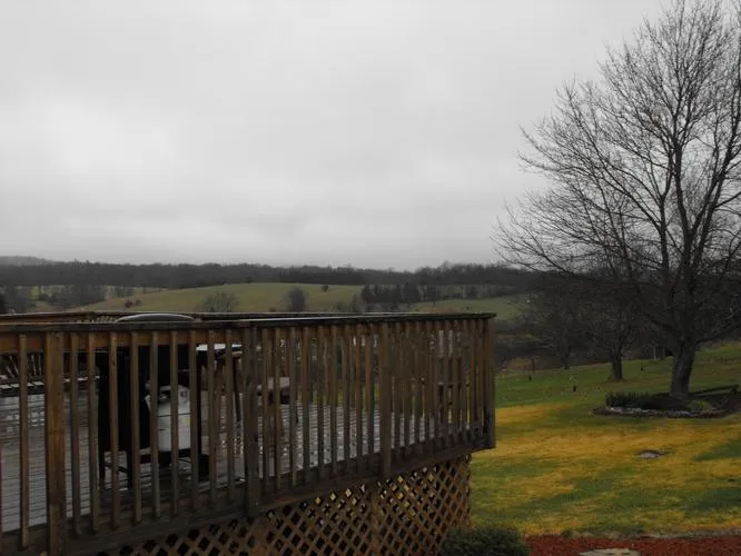 This home is very well maintained and in move-in condition. New metal roof, new siding, new flooring, newer appliances, newer heat pump. Large kitchen, full basement, partially finished. Could all be finished, if desired. All bedrooms on main level as well as garage with auto opener. Wonderful deck on the front and back with great mountain views. Laundry currently in basement but could easily be moved into garage. Package is so complete it even includes the washer, dryer, and large screen tv! Country setting, yet less than 2 miles to the interstate. Lot next to it has one storage building, no residence. Other side has home on two lots with vacant lot between.