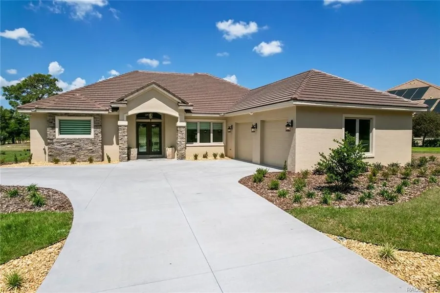 From the moment you walk through the double doors, you will be amazed with the view and custom finishes of this beautiful home. 2022 custom home with 2550 living area in the gated community of Black Diamond Ranch. This exquisite home offers 12 foot high ceilings in the living room and an open concept with fluid transition from the interior to the outdoor area making a wonderful home for entertaining or true Florida living. The kitchen is a cooks dream with over sized quartz island, custom wood cabinets, 5 burner gas stove. The master suite offers amazing views along with two large custom closets, a sitting area along with an amazing bathroom with a floating tub, large shower, dual sinks and tray ceiling. Golf membership is transferrable at closing. This home is stunning and will not disappoint!