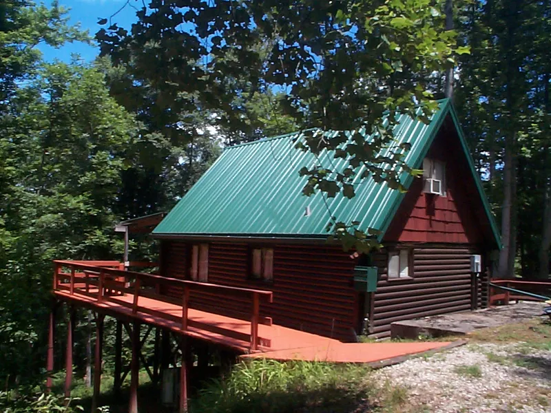 Nicely maintained log siding A frame cabin located close to the Daniel Boone National Forest with a wooded view off the back and a short walk to the waters of Cave Run Lake. This cabin is a 3 bedroom, 1 bath, with window air and baseboard heat. Solid pine hardwood flooring on the first floor, 1 bedroom on the main floor, spiral staircase leads to two more bedrooms upstairs. Most of the furnishings will stay with the cabin. The cabin is total electric and has a cistern for water.