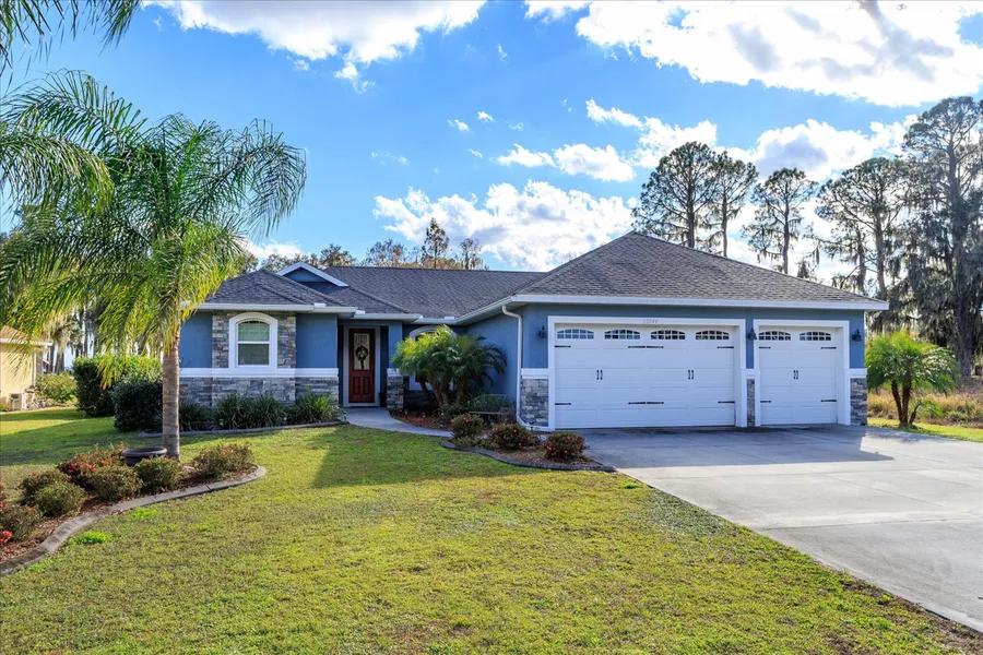 Your lakeside paradise awaits in this custom-built home by Showcase Homes. New in June of 2019, pride of ownership in the care and details abound in this home. This open floor plan home features a dining, living and kitchen area as the focal point within the home, perfect for entertaining family and friends. The kitchen features 42" maple cabinets, granite and stainless steel GE Profile appliances, including a range hood and a WiFi gas range. Under-cabinet lighting, recessed lighting, pendant lighting, ceiling fans, gas fireplace and 9' ceilings and luxury vinyl flooring complete the space. The home features a split bedroom plan with the master bedroom and beautifully appointed en-suite master bath which includes a walk-in and linen closet that opens to the lanai thru sliding doors. The two guest bedrooms share another nicely appointed bathroom with custom wood cabinets, granite and tile along with a hallway linen closet. Other features are the wired security system, pre-wired for surround sound (no equipment), gas tankless water heater, three-car garage and plenty of storage. The outdoor features of this home are wonderful. From the custom solar heated pool to the outdoor kitchen, fenced backyard and storage barn. The property also includes a custom boathouse with electric and lift and a separate dock. The stunning morning views of the lake make this home very special. Situated on a canal approximately 500' from Lake Eustis one can enjoy all the activities the lakes offer with access to Lake Dora, Griffin, Harris and more. Tucked away in the Eagle Point subdivision, you are sure to enjoy the nature and beauty that abounds while living on the waterfront. There are items that do not convey: surround sound equipment/speakers, wine refrigerator, green egg, washer/dryer, freezer in garage and garage storage.