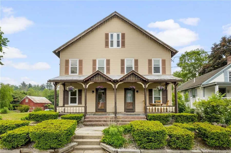 Stunning historic duplex in the heart of New Hartford! This 2-family home built in 1900 has been renovated to today's standards while keeping its original charm. One side is occupied with long-term tenants, and the other side is vacant and would be perfect for an owner-occupant or could easily be rented out as well. The vacant unit has a new kitchen with custom cabinets, granite counters, stainless steel appliances, tile flooring, and LED lights. A new powder room was added to the first floor, and the second floor full bathroom has a new vanity, mirror and shower diverter, and features a washer/dryer. The occupied unit has new tile floor in the kitchen, dining room and upstairs full bathroom, and a powder room was added on the first floor. Updates to both units include: refinished hardwood floors throughout (some original wide plank floors), fresh paint throughout, all electrical replaced (including outlets, switches, and ceiling and bathroom fans), new windows throughout, rebuilt and flashed chimney from the roofline up, repaired stone patio around the in-ground pool, installed new sewer line and ramp to pool area for equipment access, freshly landscaped retaining wall with flowers and mulch. New fence to be installed. There is a shared mudroom with a stove in the back of the house, and ample off-street parking. Prime location on Main Street with waterfront access to the Farmington River, and just steps from shopping, restaurants, entertainment, the library, and town hall.