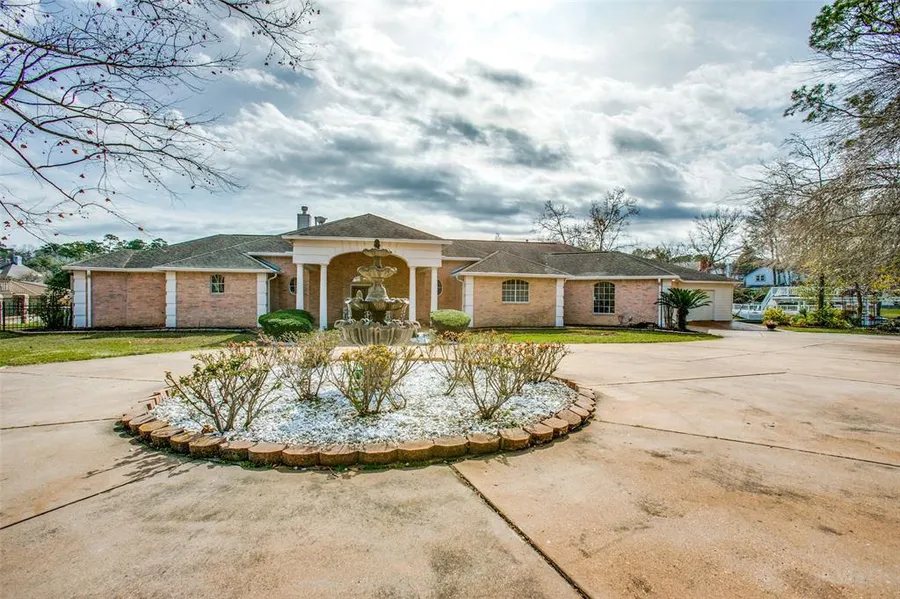 Waterfront home nestled on an inlet of Lake Conroe with two sides water in the popular gated subdivision of April Sound. This sprawling one story home offers magnificent views of Lake Conroe from almost every room through the floor to ceiling windows, granite counters, tile/porcelain/slate floors, custom cabinetry built on-site, reverse osmosis water filter system, Culligan soft water system, Generac generator, gaslog fireplace, primary bedroom w/walk-in closet, built-in's for lingerie/shoes; exercise/bonus room with doors leading to patio. Secondary bedrooms are joined by Jack/Jill bath w/double vanities, separate water closet. The backyard boasts 2 boat slips, a stunning beach entry pool/waterfall/hot tub surrounded by tropical landscaping. Fruit trees shade the side yard that lead to a private fishing spot. Golf cart garage w/entrance to game/bonus room. Refrig, freezers, w/d, antique chandelier convey with property. Approx 390' bulk head, 340' water front. Prof photos coming soon!