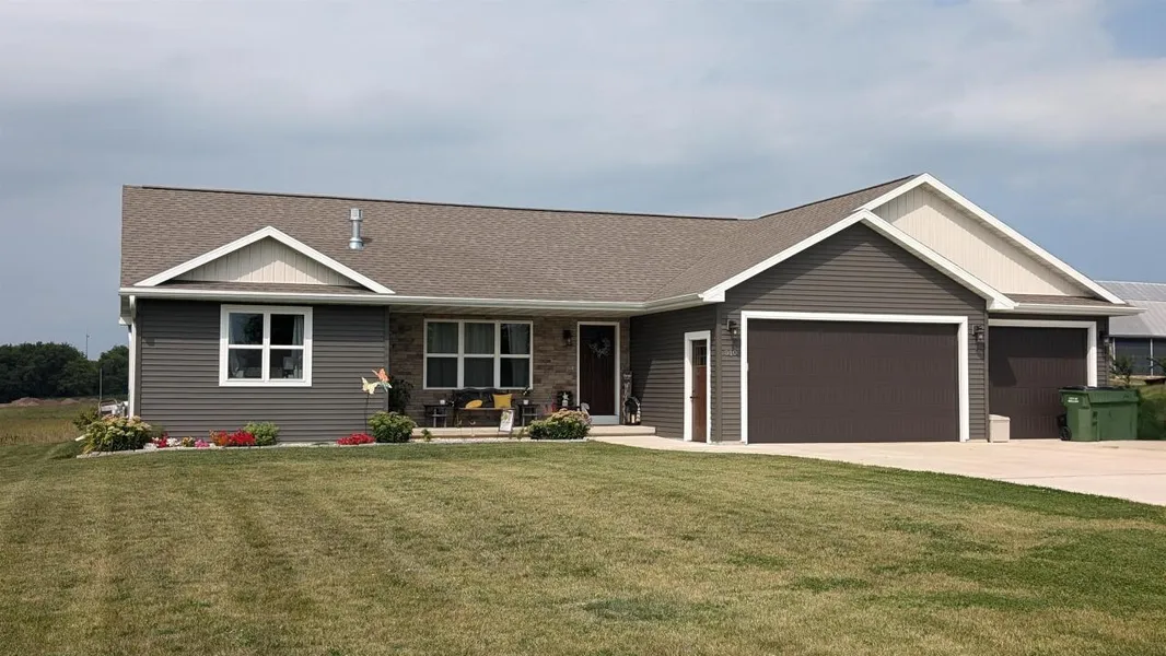 EDGE OF TOWN, public utilities & GREAT COUNTRY VIEWS all on a .46 acre lot! Quick access to school & hwys. Quality built in 2020, it has a HUGE backyard & exposed daylight windows in the lower level. Open concept w/LR-KT-DA showcasing large center island, vaulted ceiling, corner gas fireplace which offers that extra coziness feel. KT has appliances included & pantry closet. Dining has patio door out to a large patio overlooking country fields. Primary suite is SUPER-SIZED w/walk-in closet, full bath w/double sinks...NICE! Other 2BRs and a full bath finish the split bedroom plan. LL has a full bath w/shower, 4th BR w/daylight windows, & enjoy a guest bedroom or office/craft room. 1st flr laundry & mudroom with bench is a great bonus. Why build when everything is done, just move-in